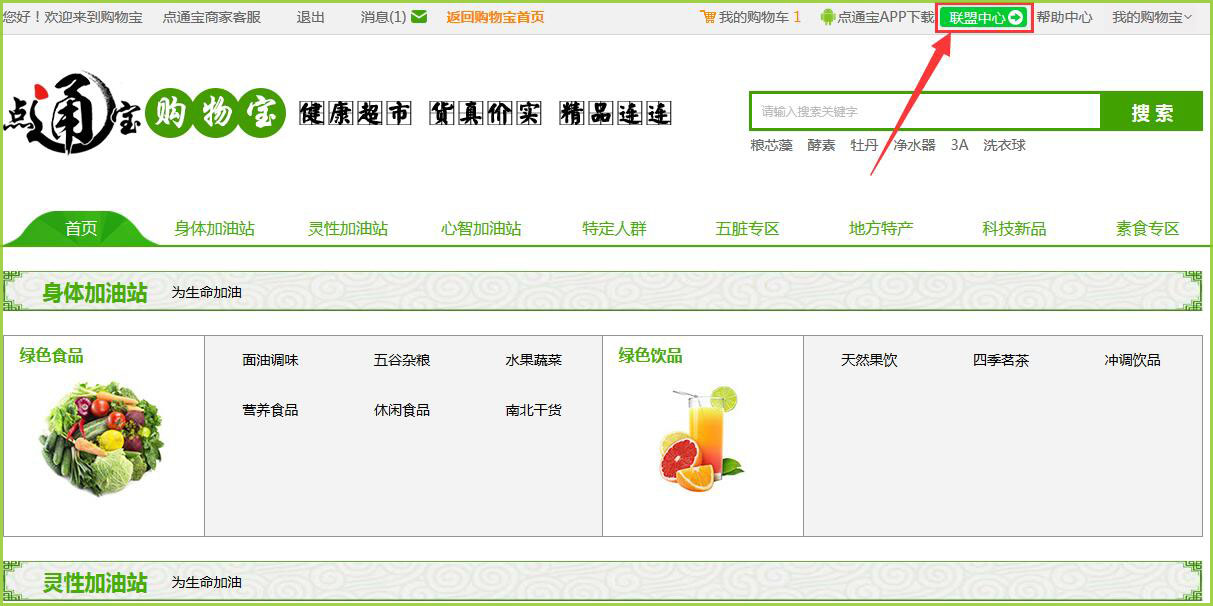 1.打开浏览器输入网址www.dtb315.com,进入购物宝首页,点击“联盟中心”