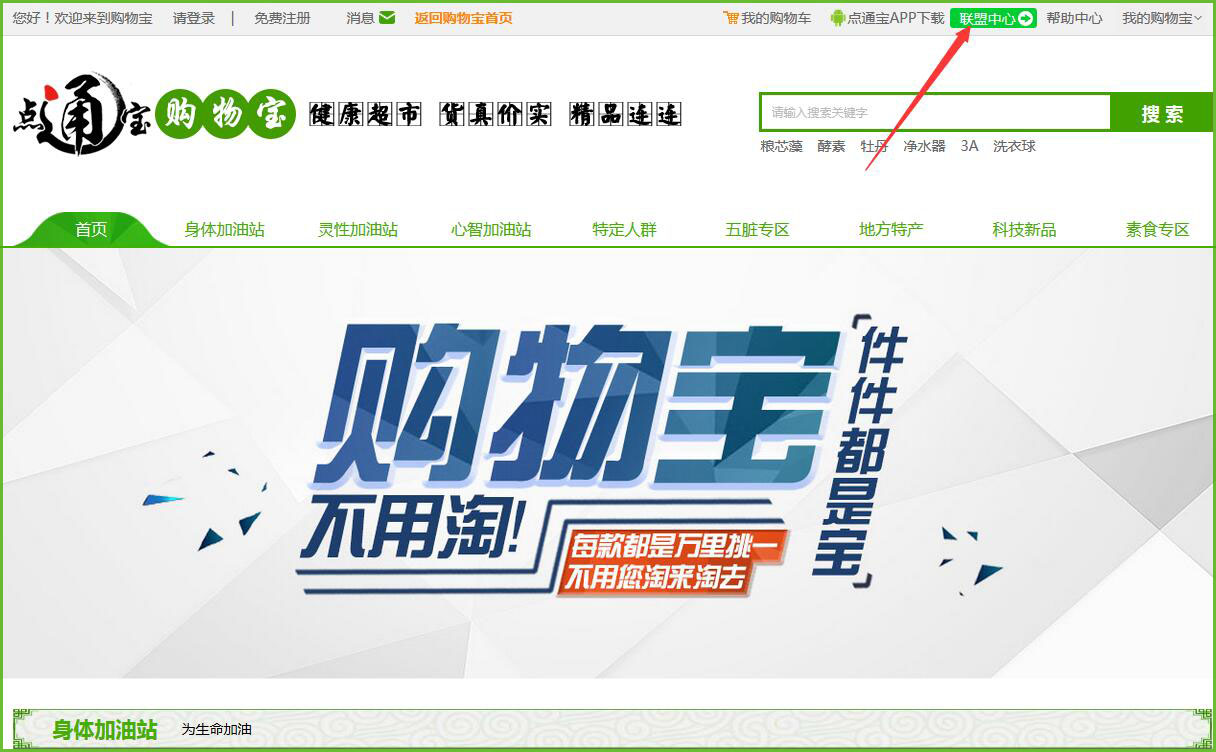 打开浏览器输入网址www.dtb315.com进入购物宝首页,点击“联盟中心”
