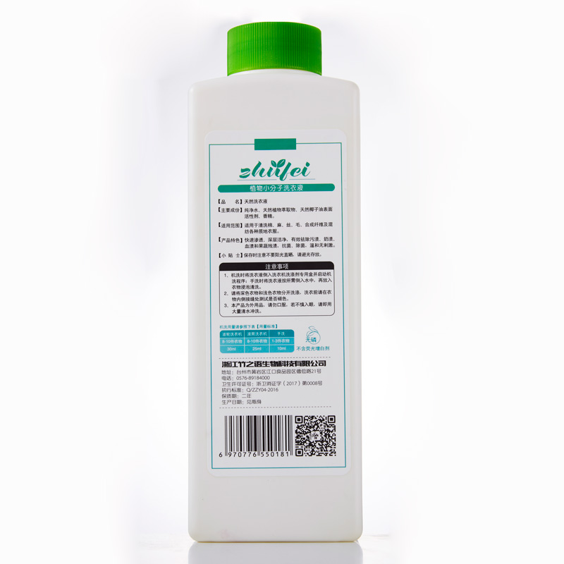 【竹妃】植物小分子洗衣液 1kg/瓶 植物萃取 祛污除渍 易漂洗 安全易漂洗 无磷 无荧光剂