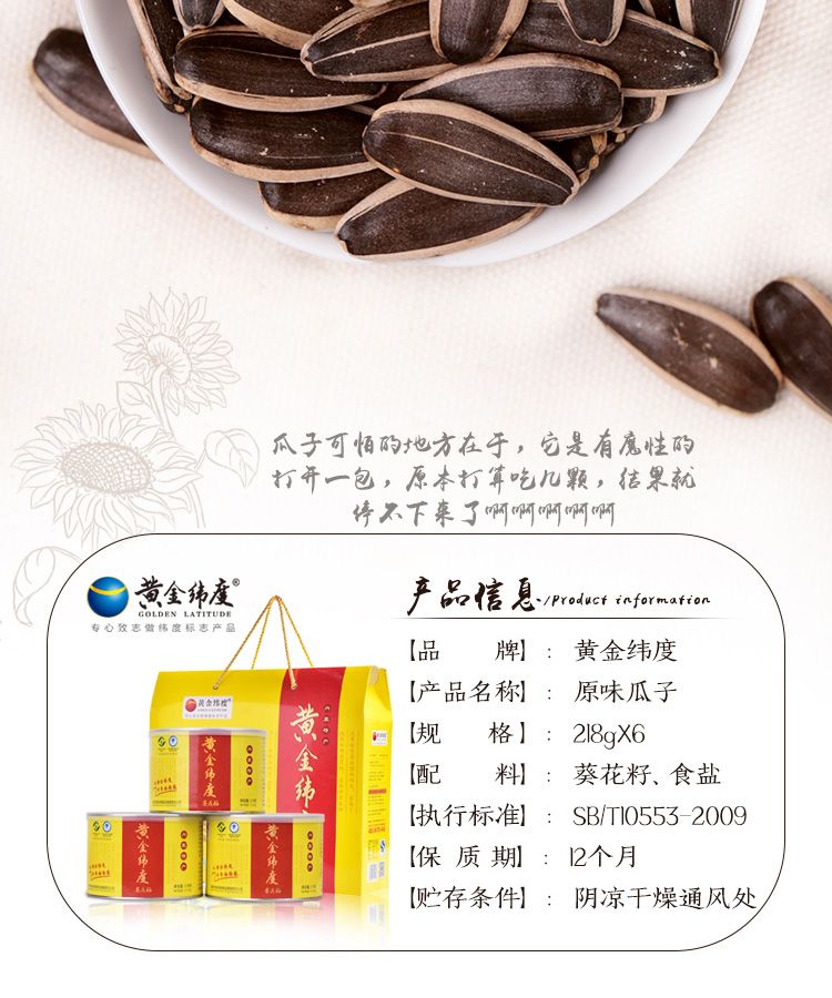 【黄金纬度】原味瓜子礼盒装 218g*6罐 内蒙古优选 精选原料 保留原味 口感醇香 营养丰富