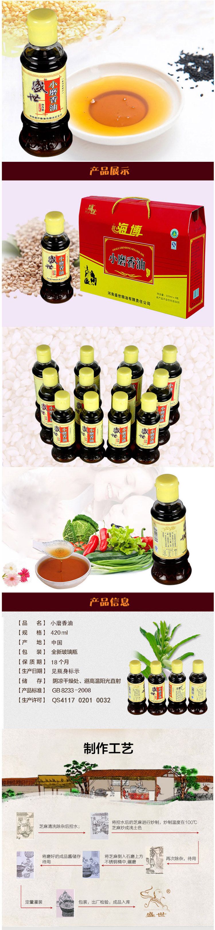 【盛世】纯正小磨香油 320ml/瓶 麻油 火锅凉拌调味油 驻马店特产 月子孕妇油