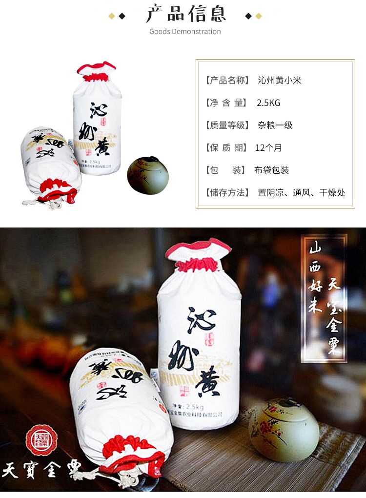 【天宝金栗】 沁州黄小米 2.5kg/袋 原生态 山西特产