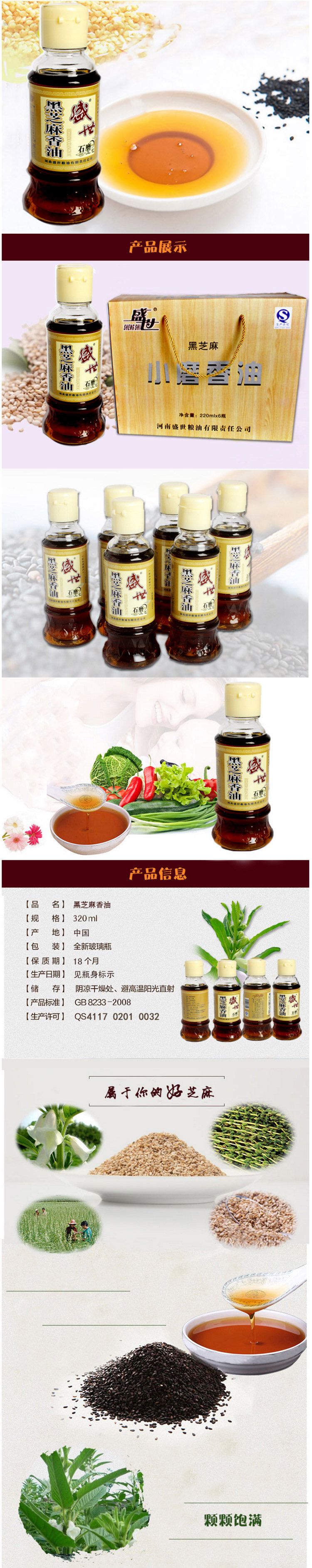 【盛世】纯正石磨黑芝麻香油 220ml/瓶 小磨香油 麻油 火锅凉拌调味油
