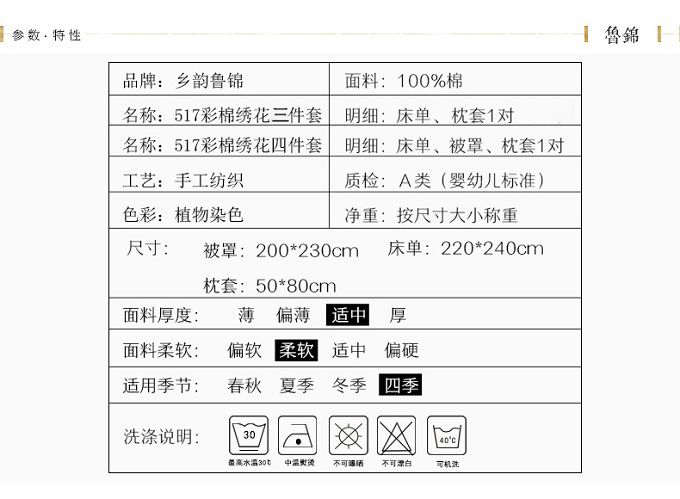 【乡韵鲁锦】 手绣牡丹床上四件套 大红色