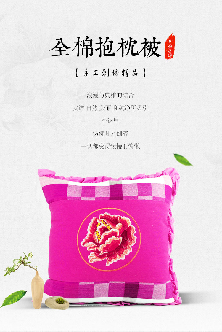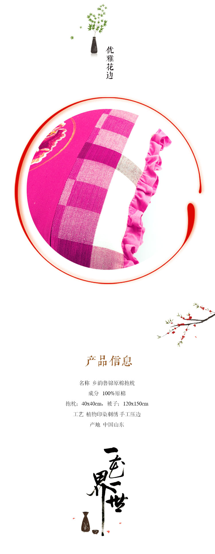 【乡韵鲁锦】 原棉 抱枕 植物印染刺绣 手工压边