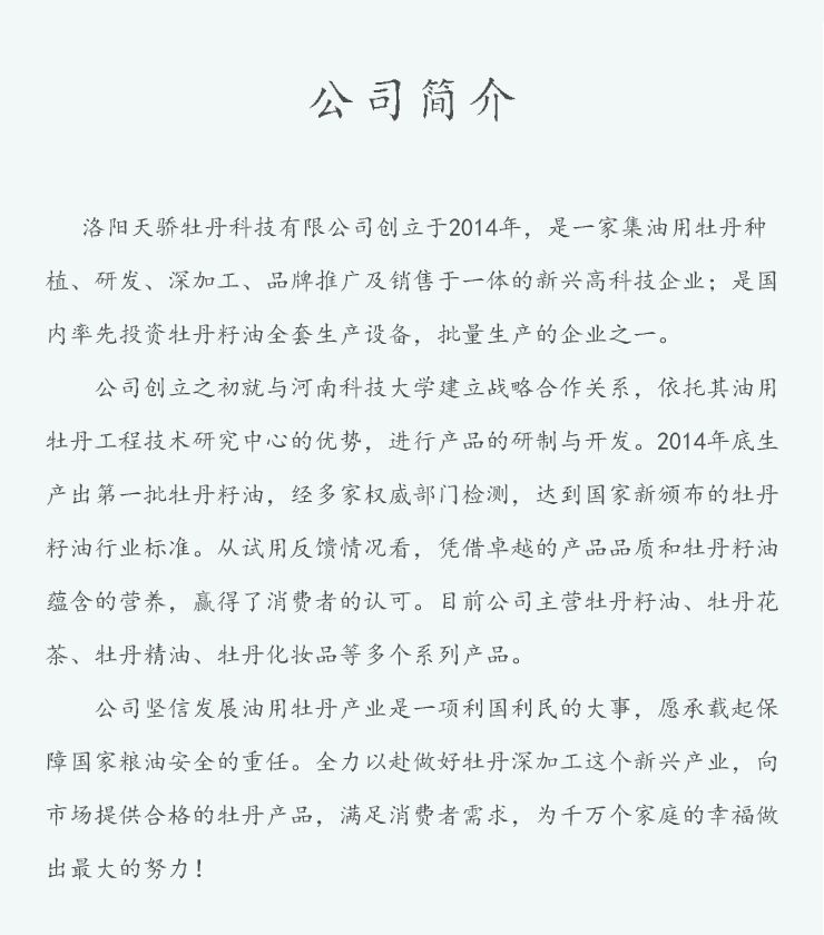 【国色丹香】 牡丹籽油 30ml/瓶 营养丰富 洛阳特产 低温压榨 迷你旅行装