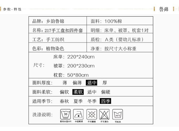 【乡韵鲁锦】纯棉217四件套 复古民族风 纯手工盘扣(床200*220cm)