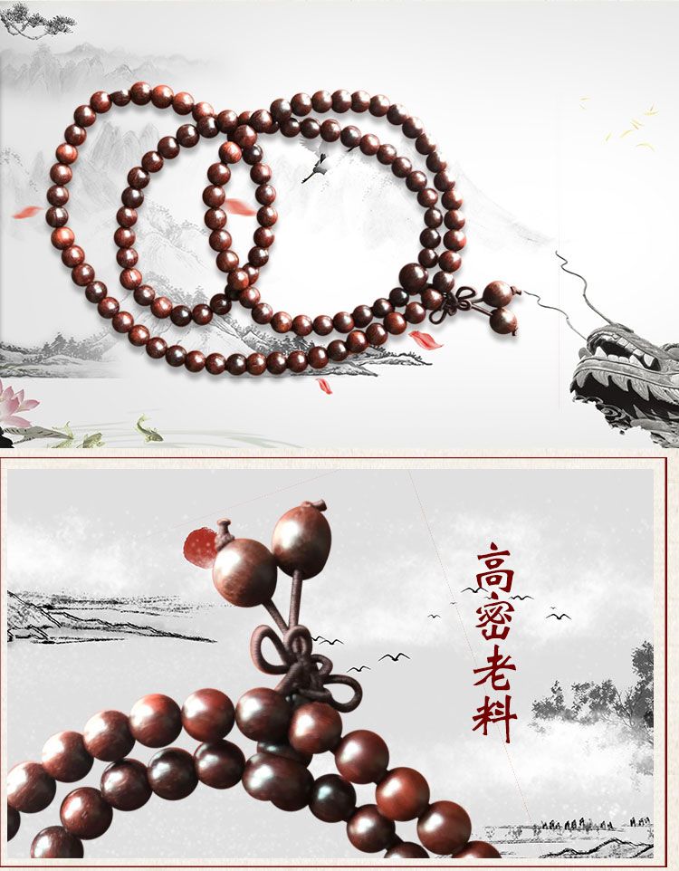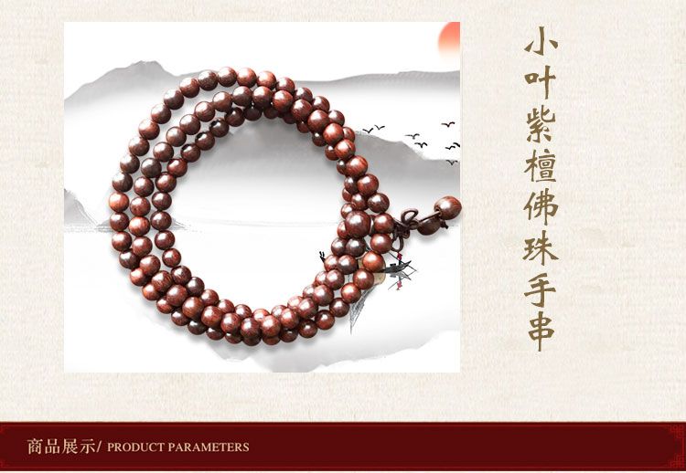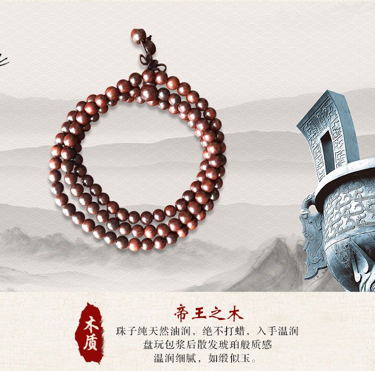 【宏通】小叶紫檀手串 8mm*108颗 精选原料 手工打磨 天然润滑 温润细腻 质地坚硬 纹理细密