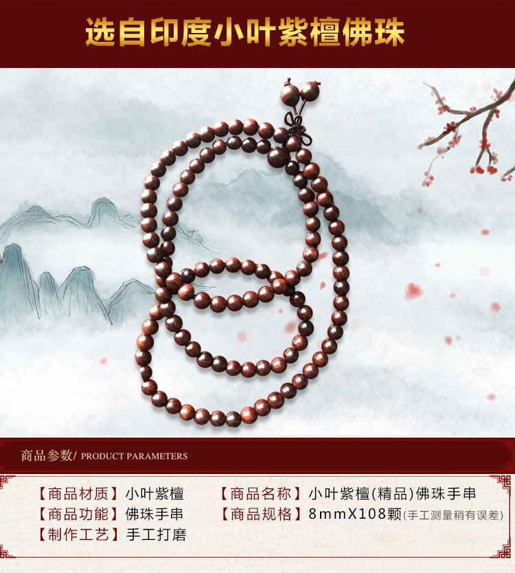 【宏通】小叶紫檀( 精品)手串 8mm*108颗 精选原料 手工打磨 天然柔润 纹理细密 质地坚硬