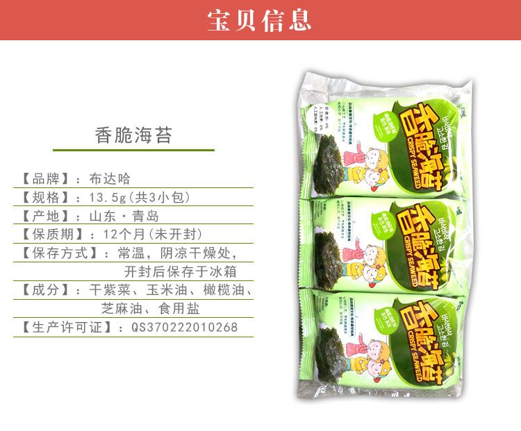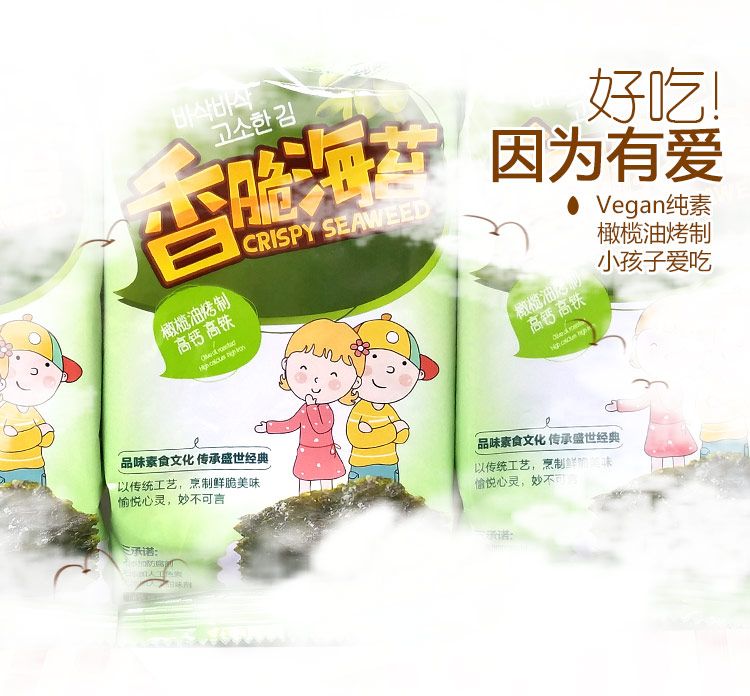 菩提树系列香脆海苔进口的原材料,独特的稀有海青菜,只有在深海干净水域生长的一种深海植物,特别健康营养,刚开始吃的时候带有独特的味道,越吃越想吃,纯素配方,独家工艺匠造。
