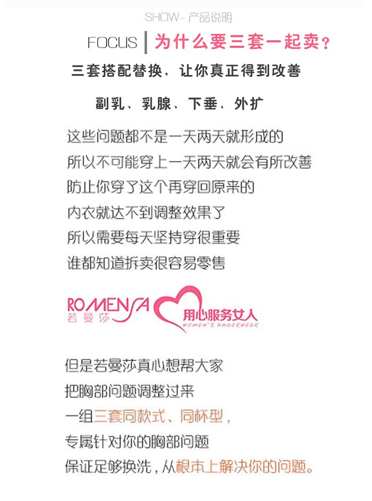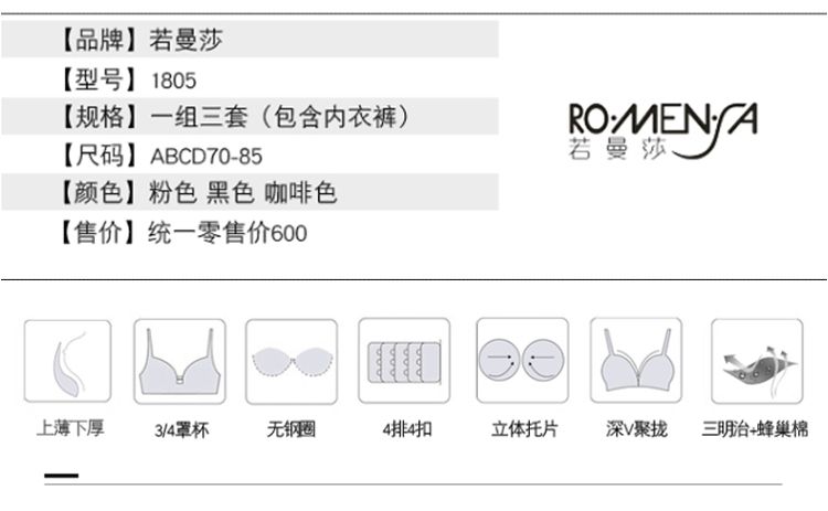 【若曼莎】无钢圈内衣8908款 3套装 大罩杯胸罩 大码超薄 外扩聚拢 调整型 文胸套装