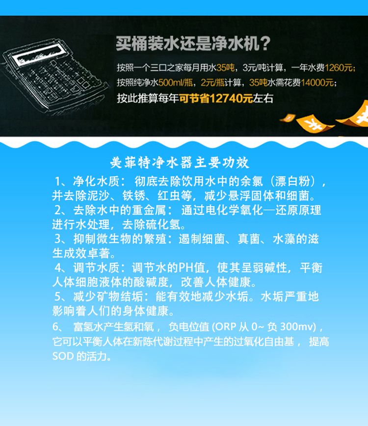 【美菲特】矿物质净水器 5级过滤 去除余氯杂质 分解有害物质 不用电 无废水