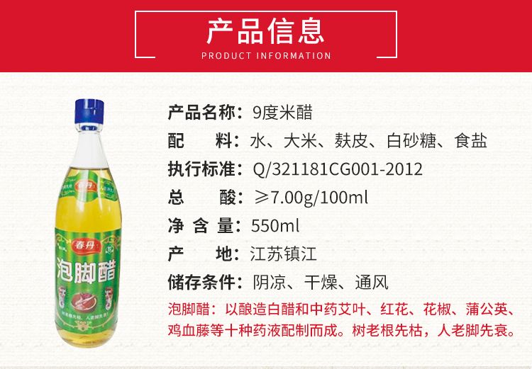 【春丹】泡脚醋 550ml/瓶 暖足 4瓶包邮