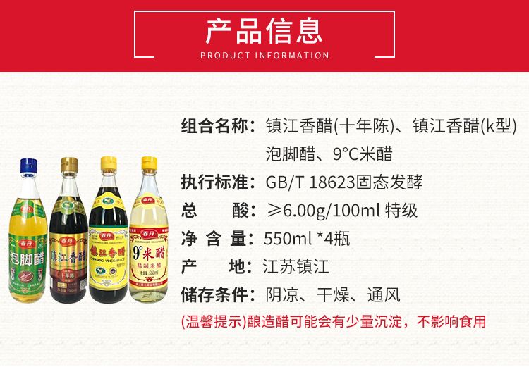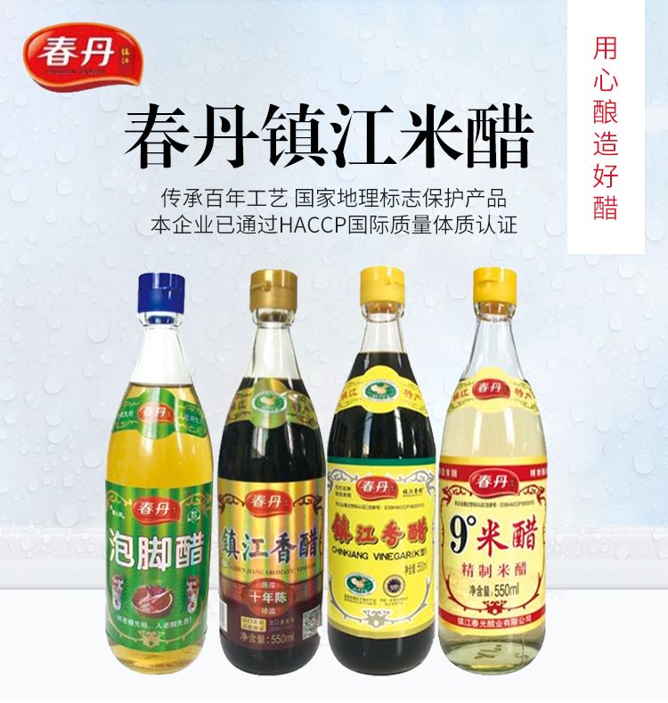 【春丹】镇江香醋(十年陈)+镇江香醋(K型)+泡脚醋+9°米醋 550ml/瓶*4瓶