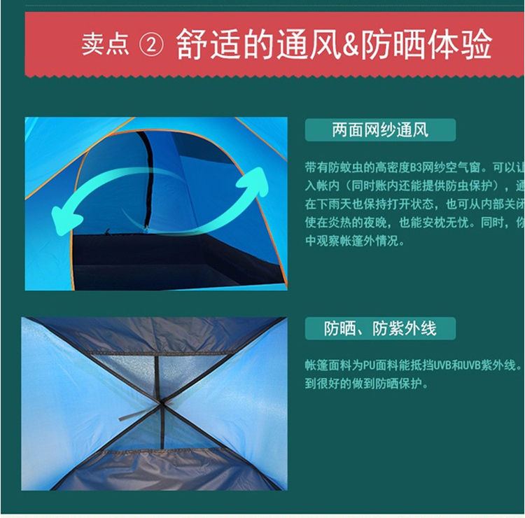 【MAKI ZAZA】户外野营折叠全自动帐篷 速开 双人防晒防雨透气 MKZ-005