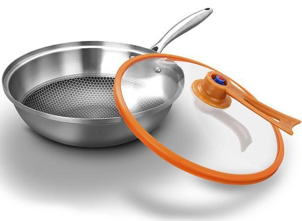 【房冬】五层无烟不粘钢锅 直径32cm 蜂巢花纹 易于清洗 极少油烟 完美实用
