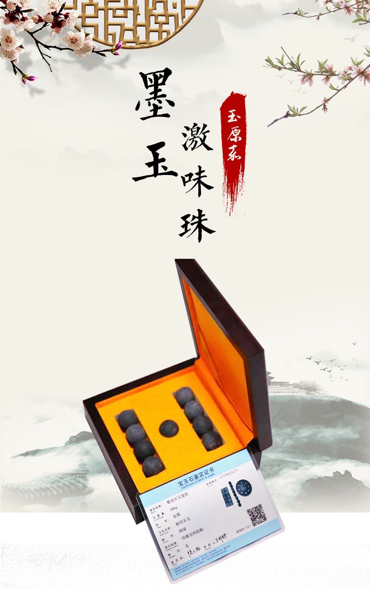 【玉原嘉】墨玉激味珠 1.8cm*9颗/盒 墨绿玉餐用激味珠