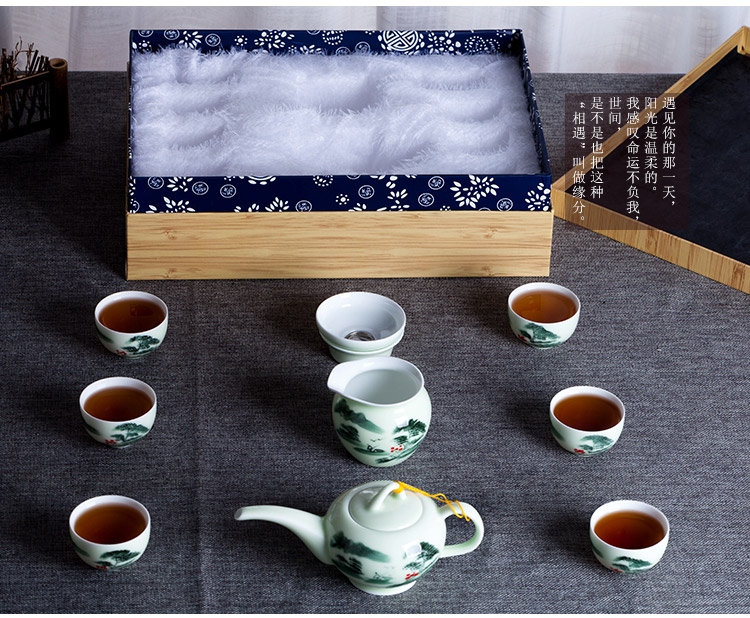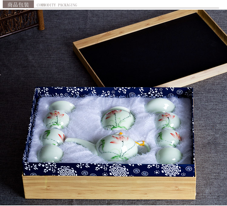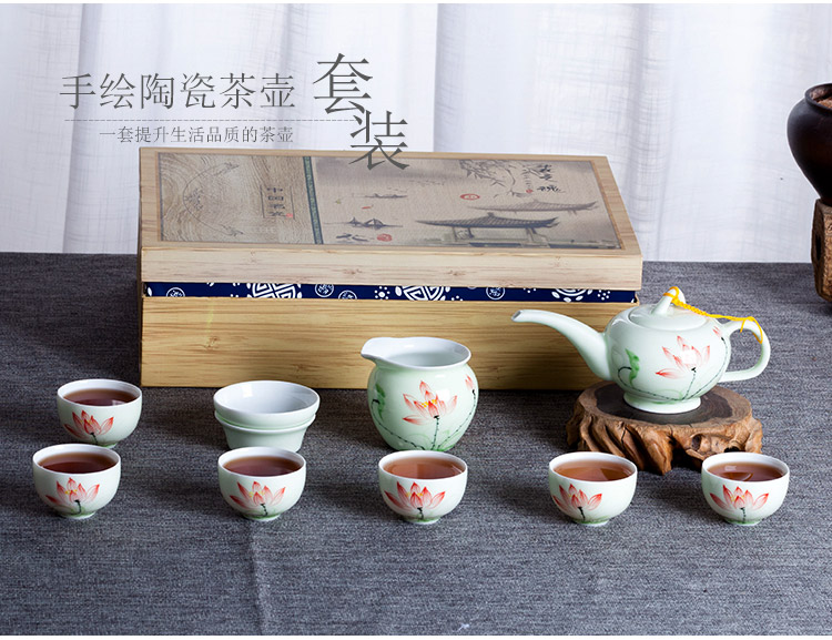 【景德镇】手绘陶瓷茶壶套装 10件套 茶具 杯子 水杯 礼品盒 定制 手工 家用办公
