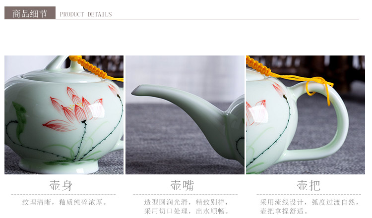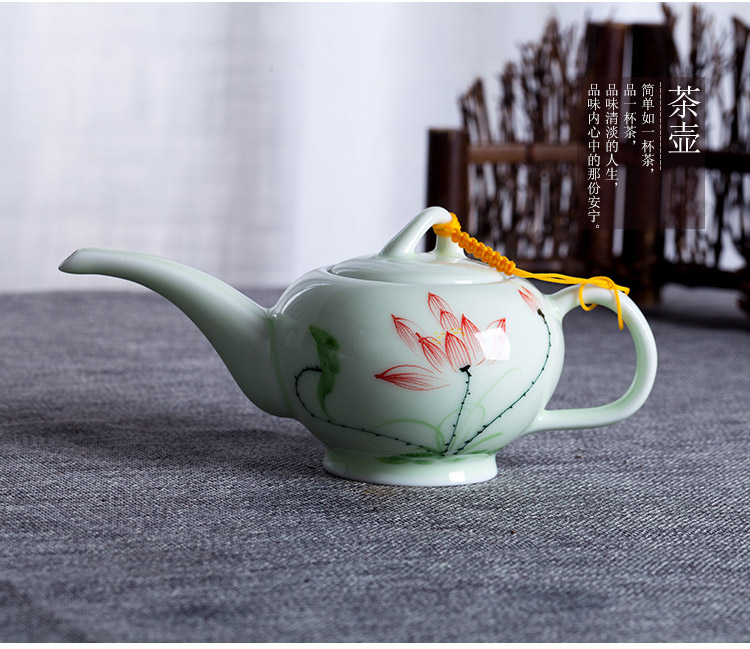 【景德镇】荷花陶瓷茶壶套装 10件套 茶具 珍珠白茶杯 礼品 主人杯 家用办公 单杯 碗 杯子