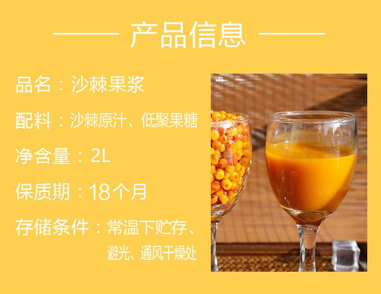 【善棘】野生沙棘原浆简装 2L/袋/盒 无菌包装