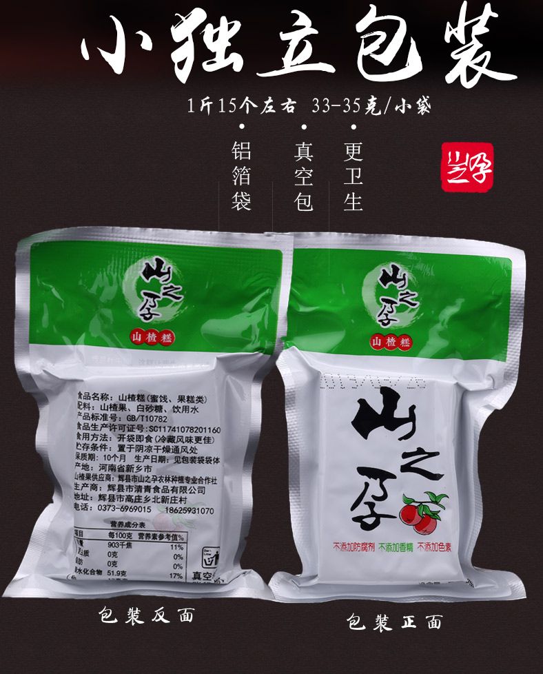 【山之孕】太行山袋装山楂糕 250g*2袋 人工挑选 手工制作 营养丰富 酸甜开胃