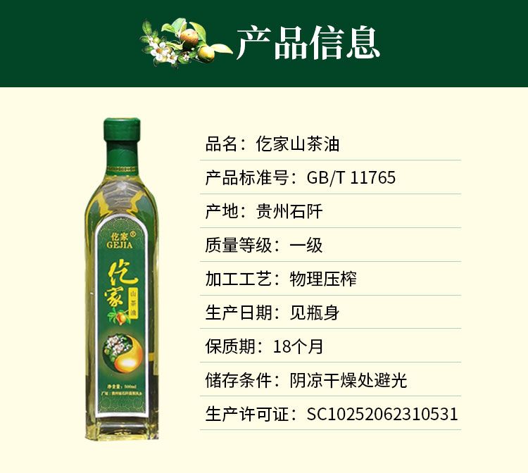 【琴江园】 山茶油 250ml/瓶 茶油 有机茶籽油