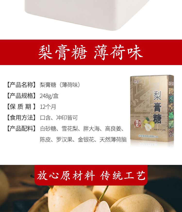 【赵雪】百草梨膏糖 248g/盒 手工熬制 清凉薄荷 胖大海 砂板糖