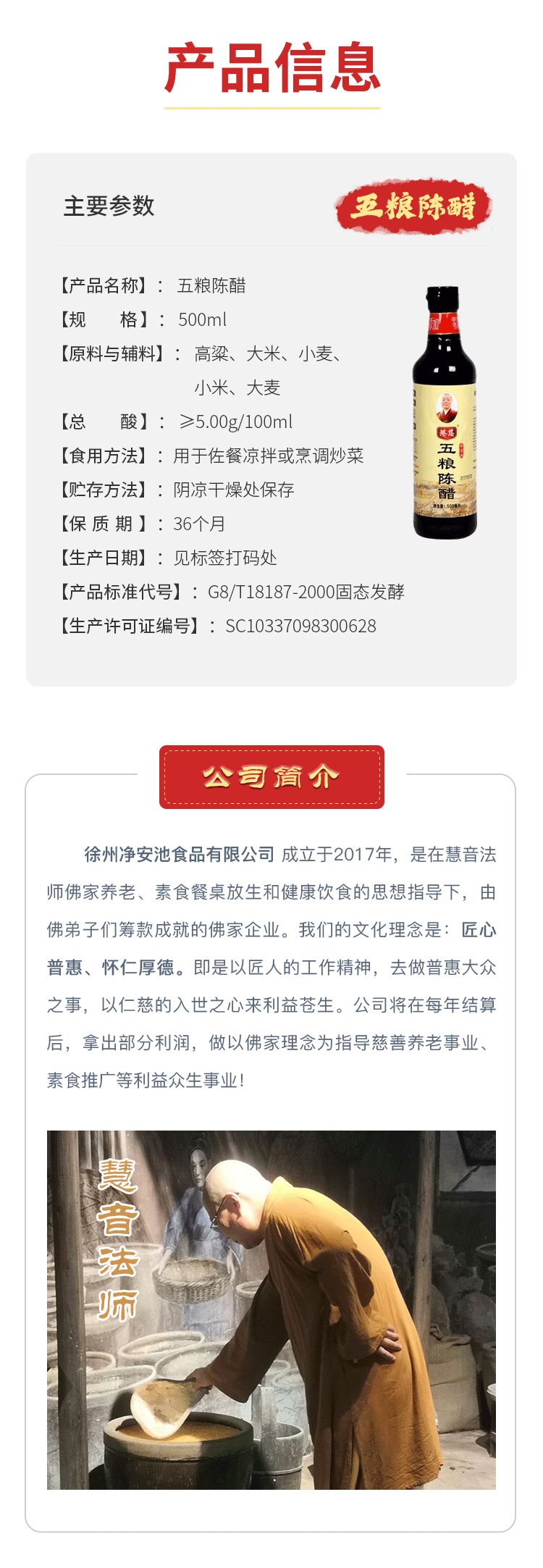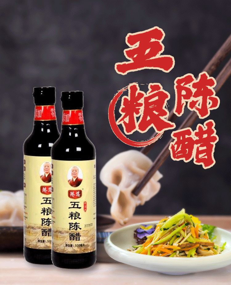 【慜慈】五粮陈醋 500ml/瓶*2瓶 原生态传统酿造 日晒夜露