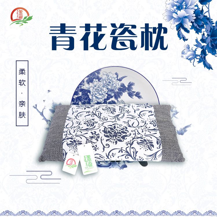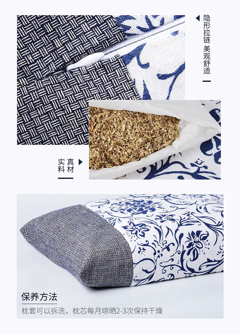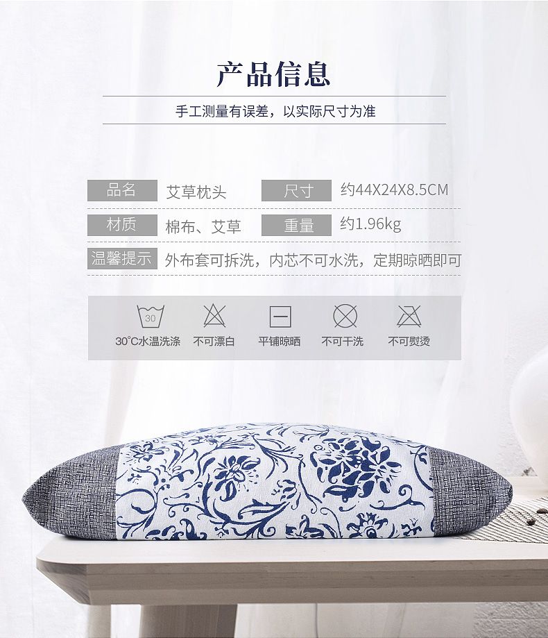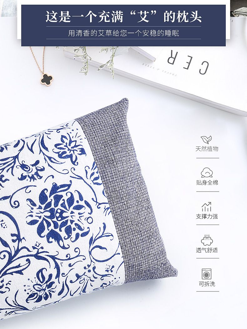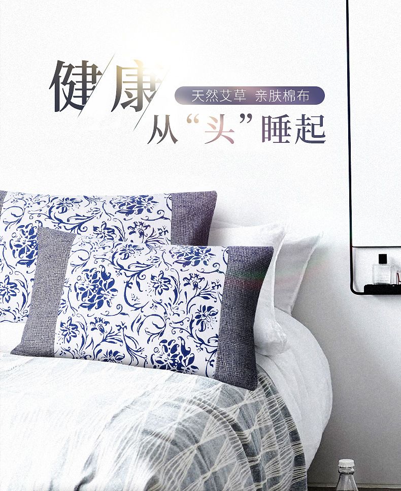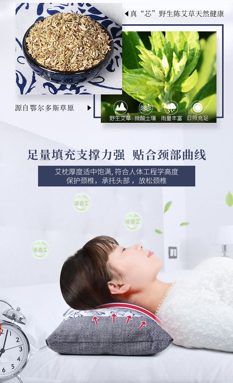 【爱草原】艾草绣花缎面宫廷枕 枕头 保护颈椎 艾草枕头