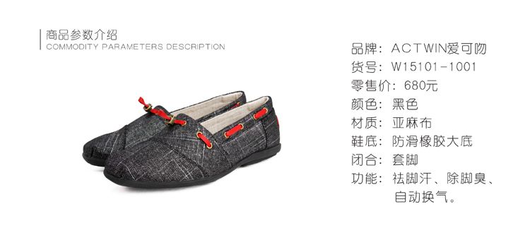 【爱可吻】ACTWIN自动换气防水亚麻布女鞋 精选布料 柔软细腻 舒适透气 天然橡胶 轻便防滑