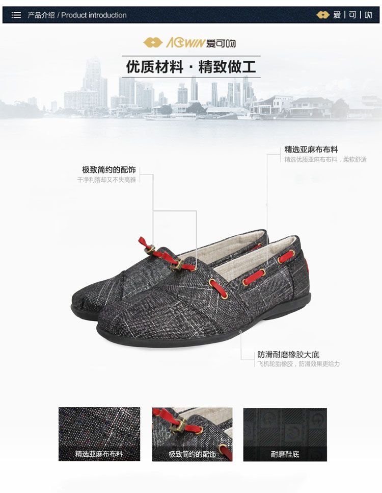 【爱可吻】ACTWIN换气海军鞋超纤男鞋 精选亚麻布料 柔软细腻 结实耐磨 防滑轻便