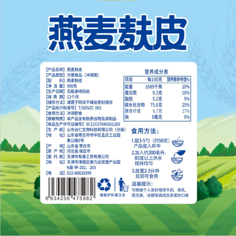 【知味斋】燕麦麸皮即食燕麦片冲饮谷物健身代餐饱腹早餐食品500g *2
