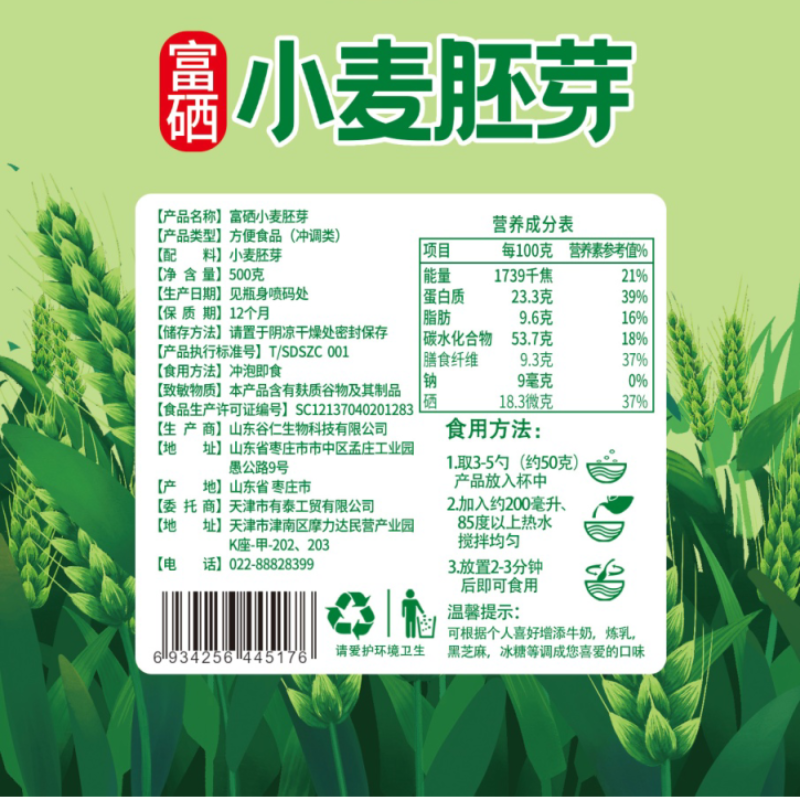 【庆和】小麦胚芽 1kg/桶 营养早餐 丰富膳食纤维 营养均衡 即食代餐