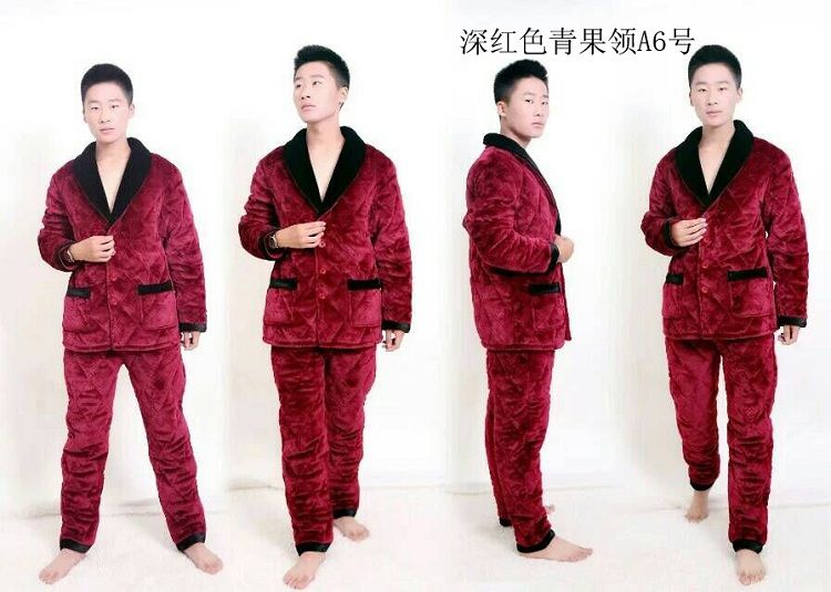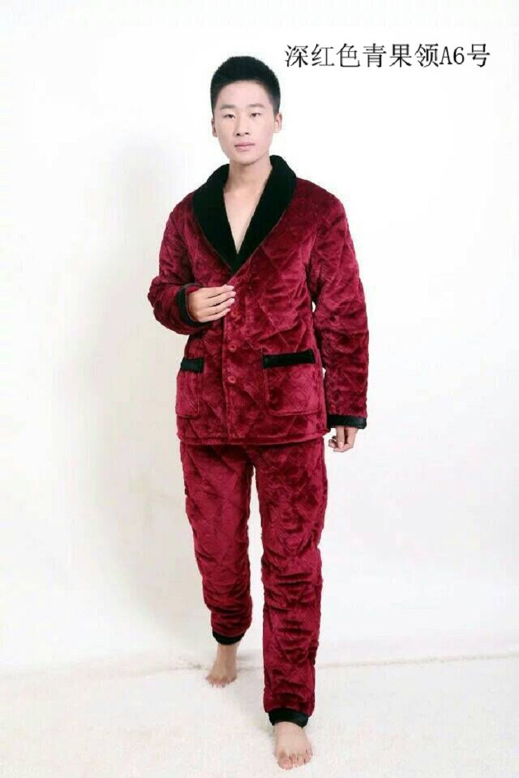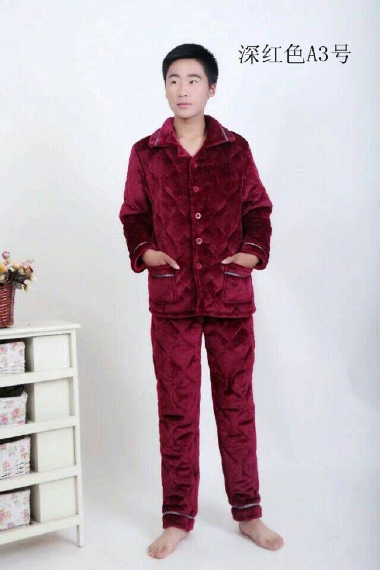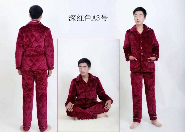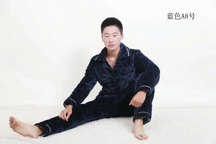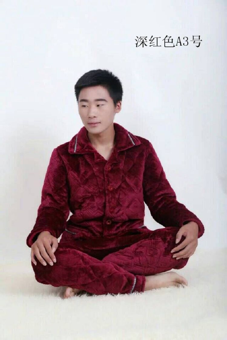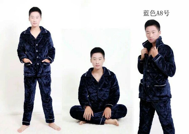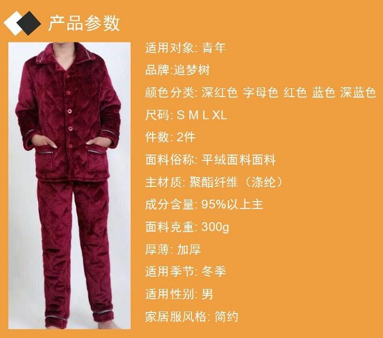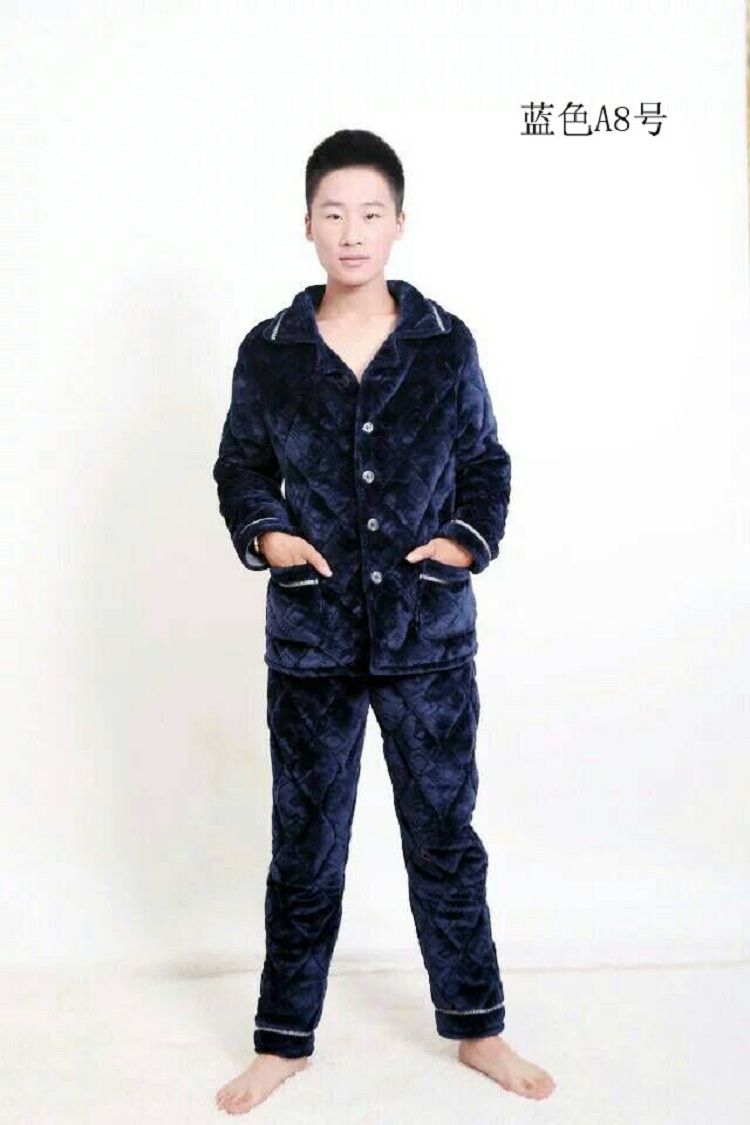 【追梦树】 男士睡衣 秋冬加绒加厚 珊瑚绒 夹棉套装 法兰绒 男士长袖家居服