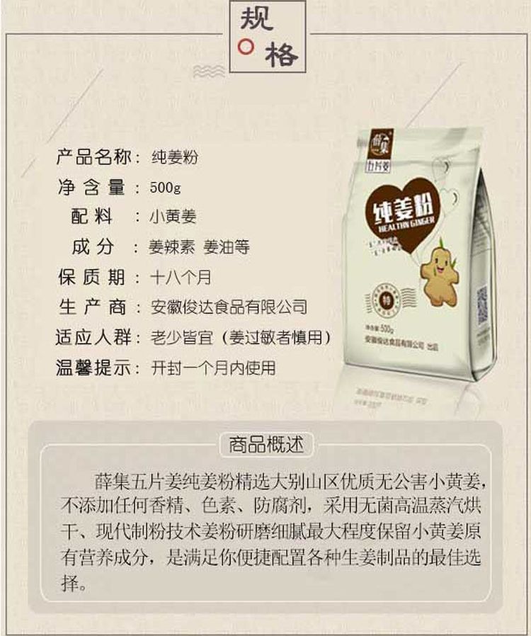 【薛集】五片姜纯姜粉 500g/袋 食用小黄姜 大别山小黄姜 无硫 (2盒包邮)