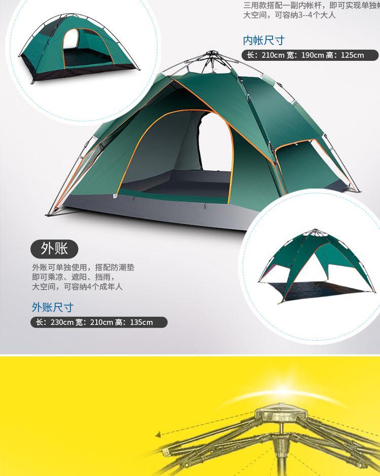 【MAKI ZAZA】户外野营折叠全自动帐篷 速开 双人防晒防雨透气 MKZ-005