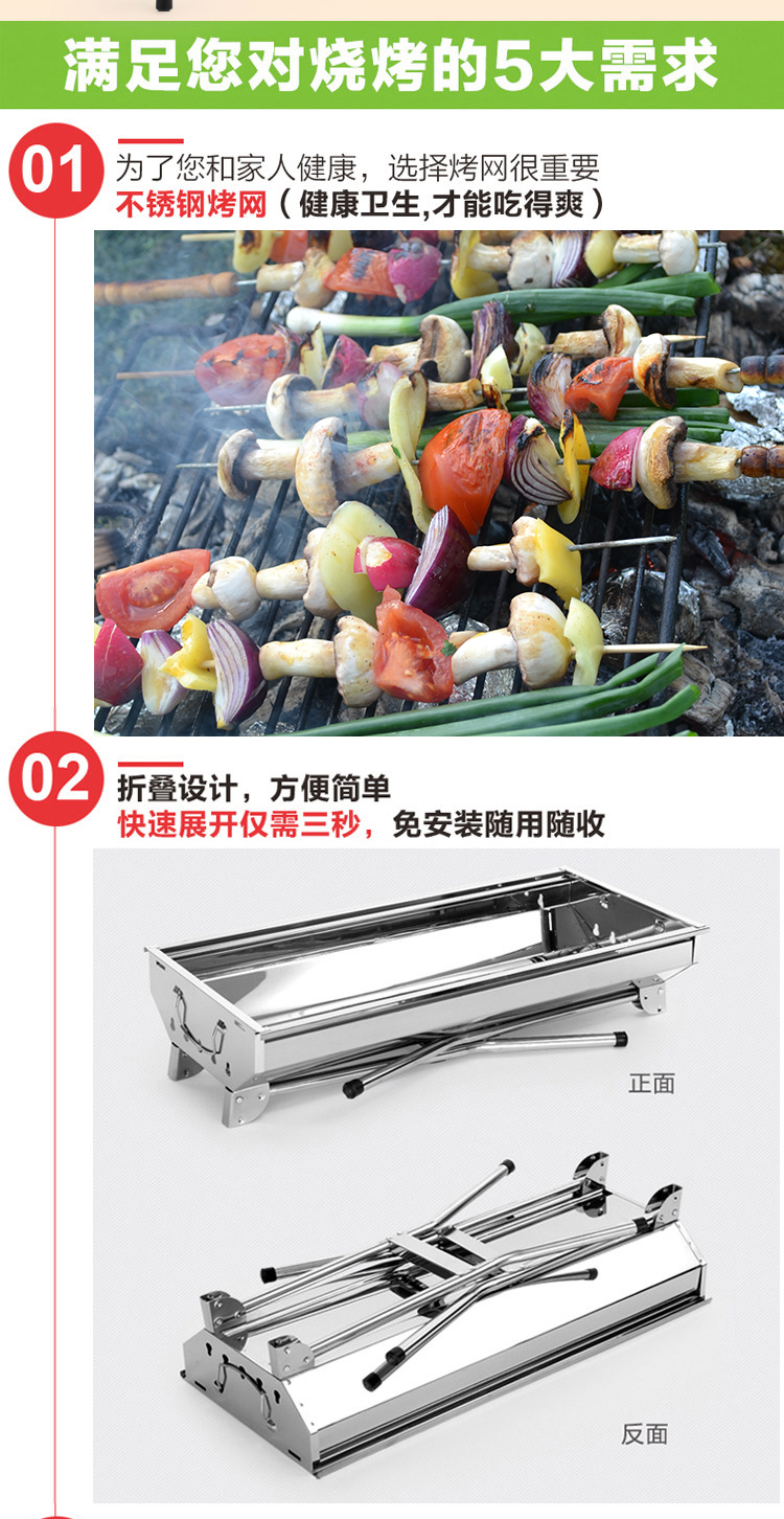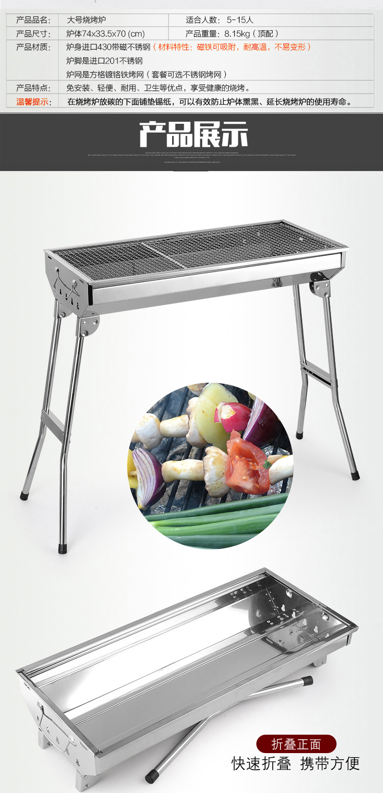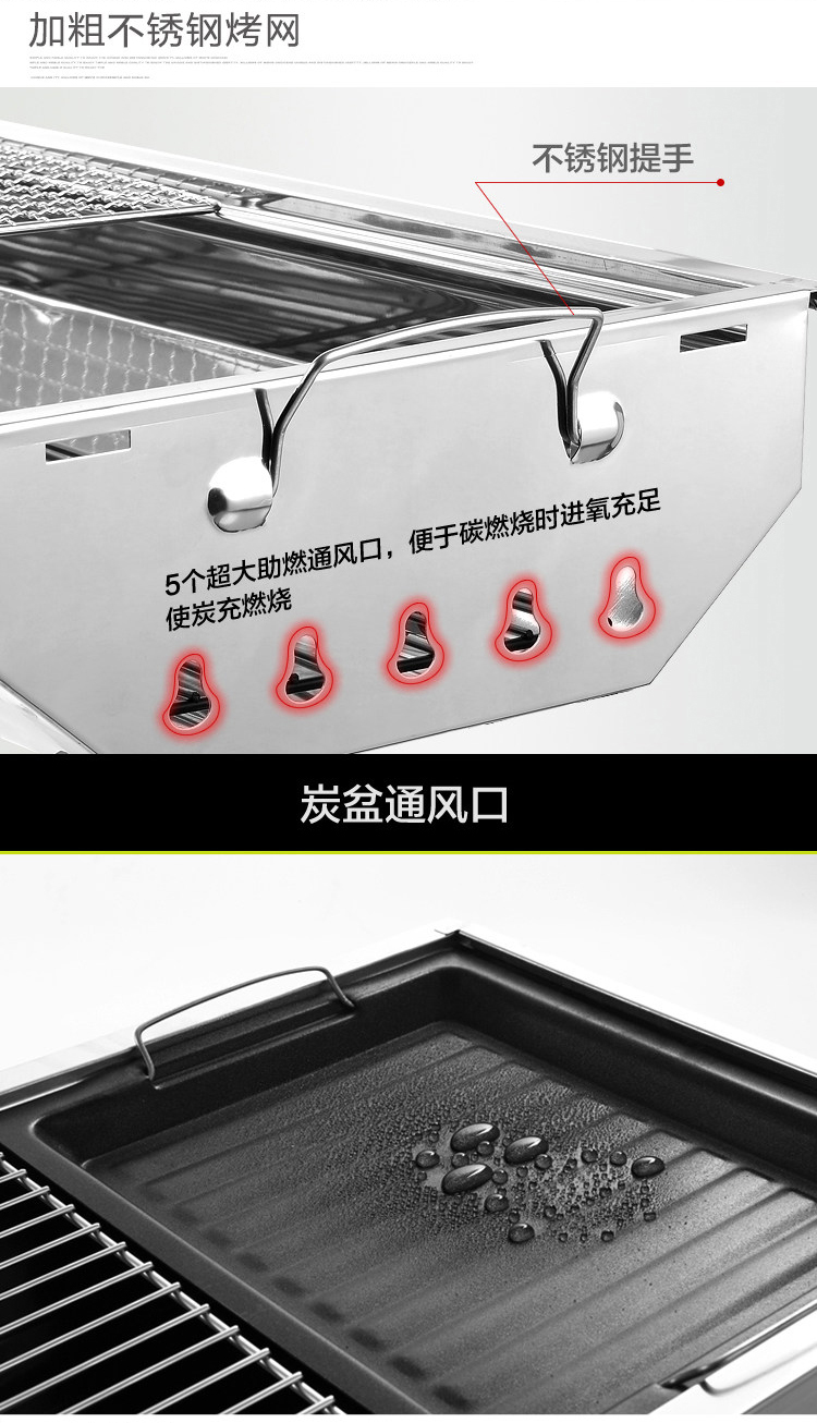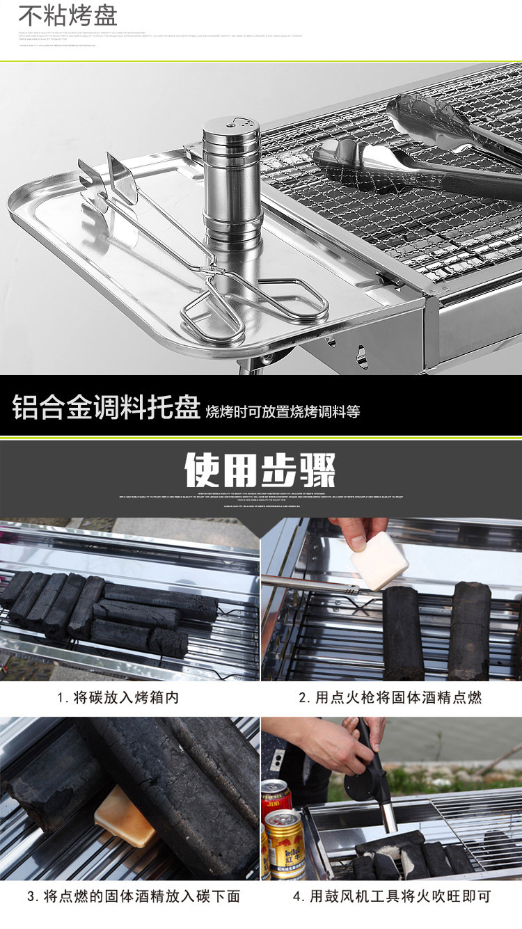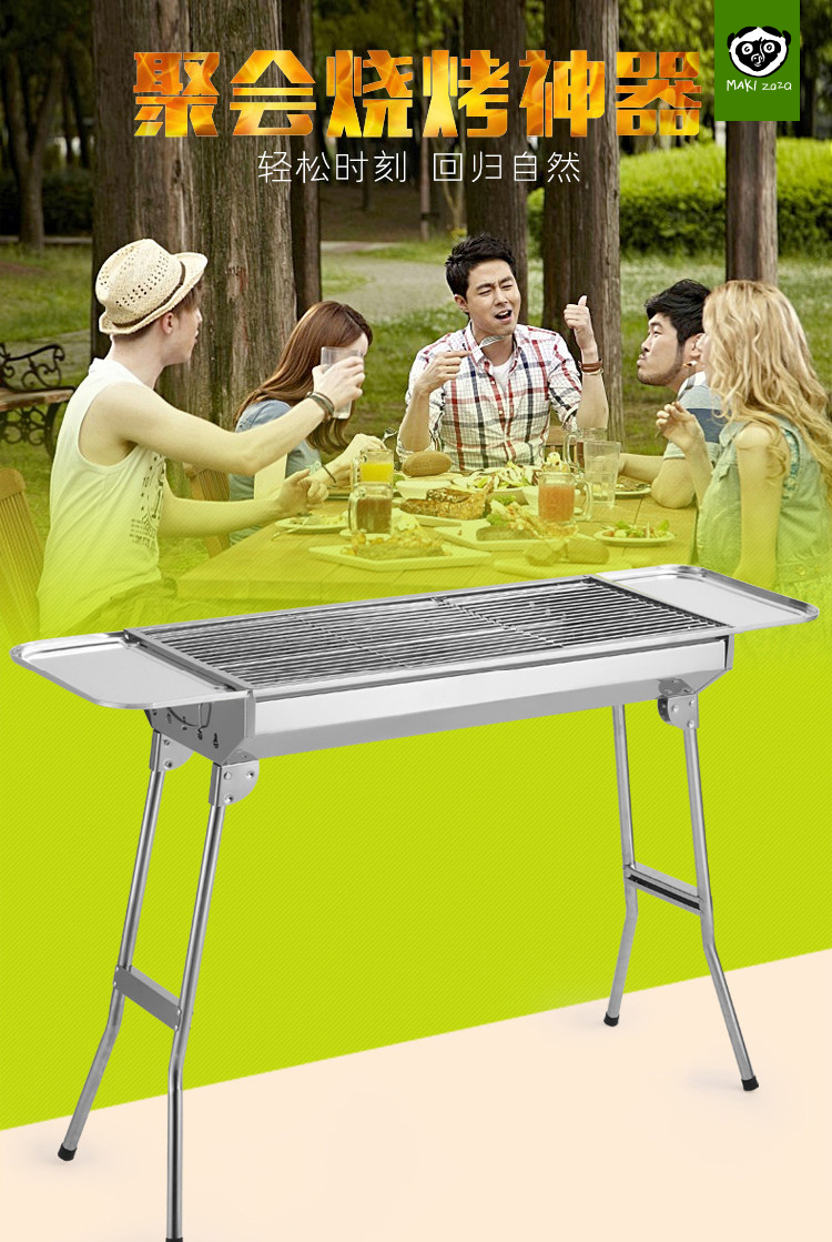【MAKI ZAZA】大号烧烤炉 加厚不锈钢 木炭户外野炊烧烤架 折叠 MKZ-014