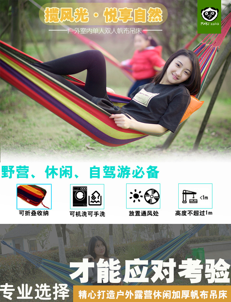 【MAKI ZAZA】高承重吊床 野营休闲自驾游必备 单人帆布加厚吊床 MKZ-012