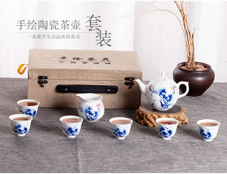 【景德镇】手绘陶瓷茶壶套装 10件套 茶具 杯子 水杯 礼品盒 定制 手工 家用办公