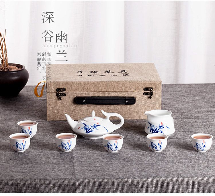 【景德镇】六度茶具套装 8件套 茶具 青花瓷 杯子 水杯 礼品盒 家用办公 手绘