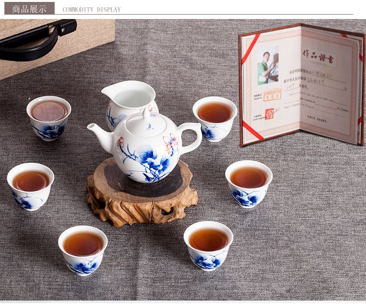 【景德镇】手绘陶瓷茶壶套装 8件套 茶具 青花瓷 杯子 碗 主人杯 家用办公 杯子
