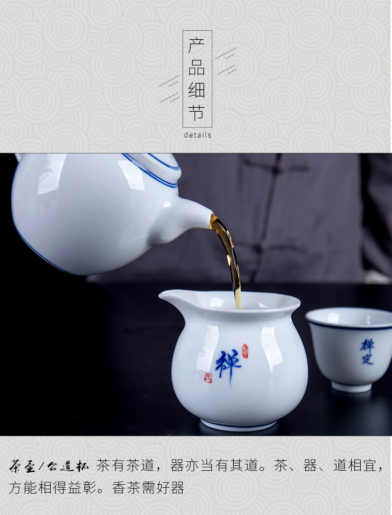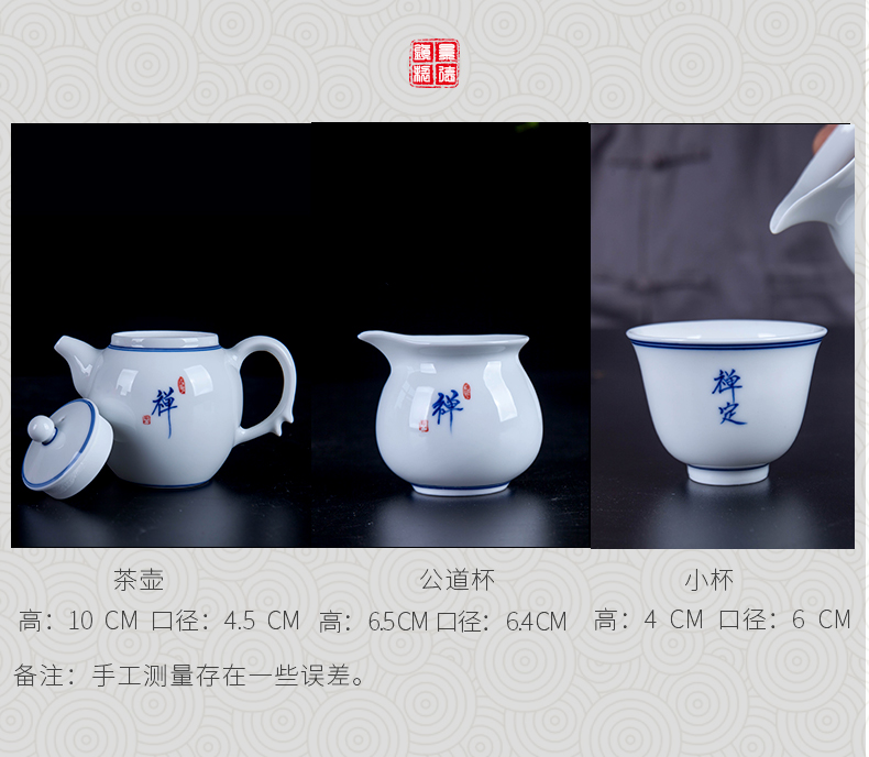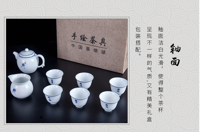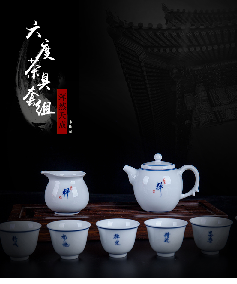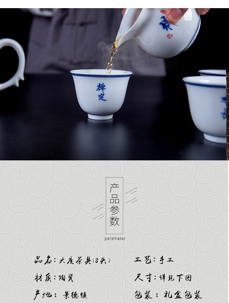 【景德镇】六度茶具套装 8件套 茶具 青花瓷 杯子 水杯 礼品盒 家用办公 手绘