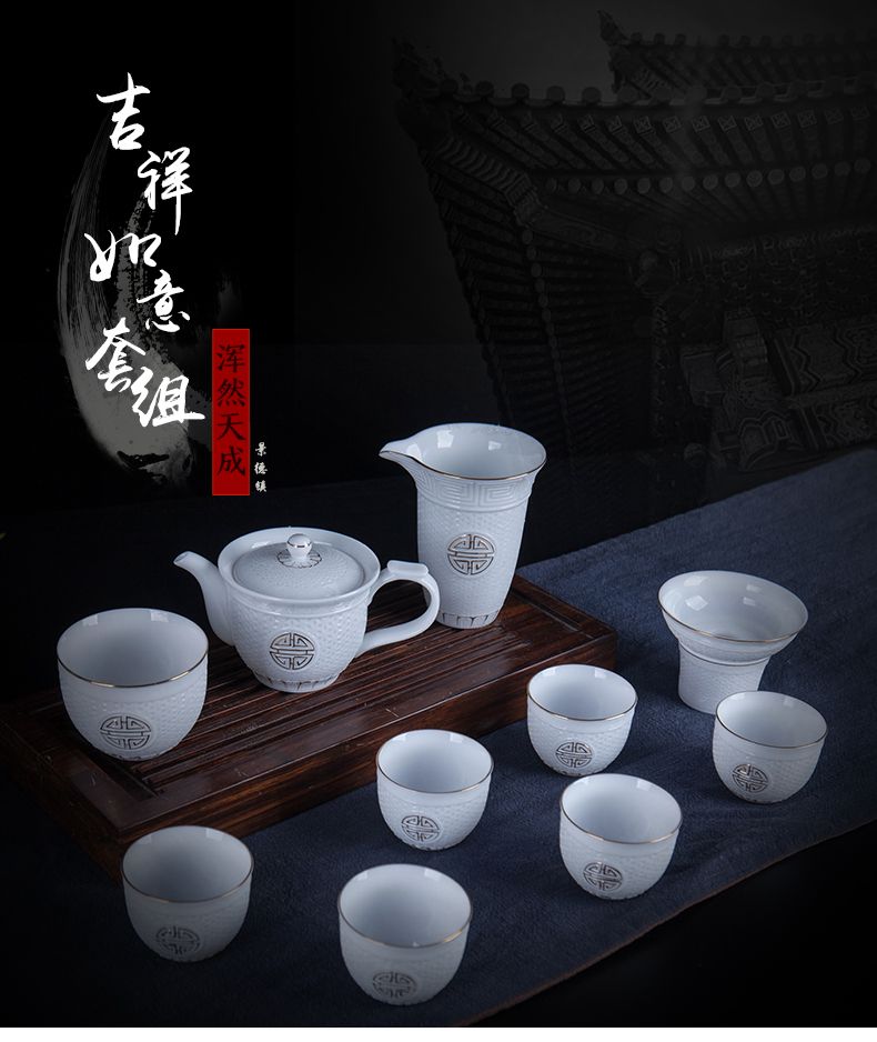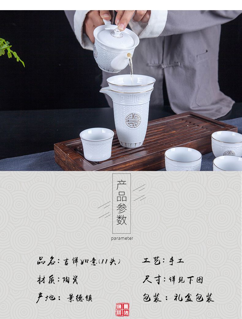 【景德镇】吉祥如意套装 11件套 茶具 杯子 水杯 套装 礼品盒 碗 家用 办公 11件套手工简单