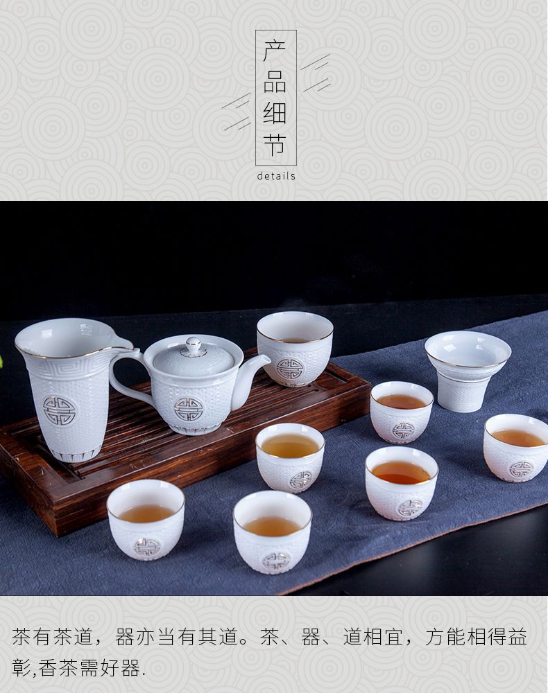 【景德镇】薄肽白玉瓷套装 12件套 茶具 水杯 杯子 套装 家用办公 礼品盒定制