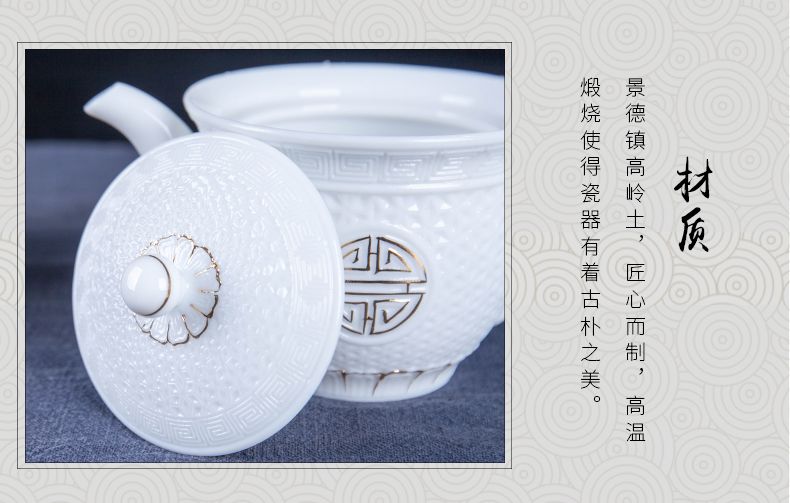 【景德镇】荷花陶瓷茶壶套装 10件套 茶具 珍珠白茶杯 礼品 主人杯 家用办公 单杯 碗 杯子