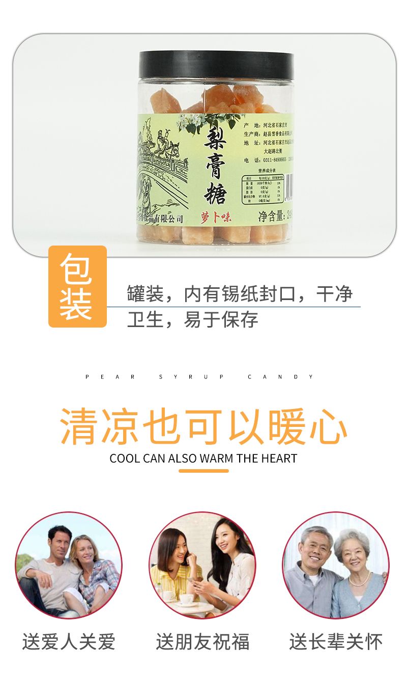 【赵雪】无蔗糖梨膏糖 100g/罐*2罐 原汁原味吃的更放心