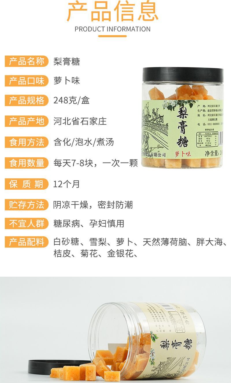 【赵雪】百草梨膏糖 248g/盒 手工熬制 清凉薄荷 胖大海 砂板糖