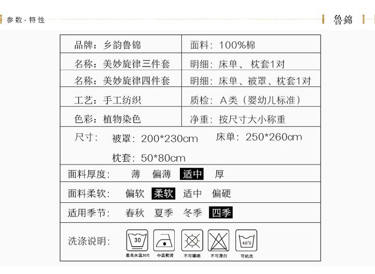 【乡韵鲁锦】五彩四件套 被单 被罩 枕头套