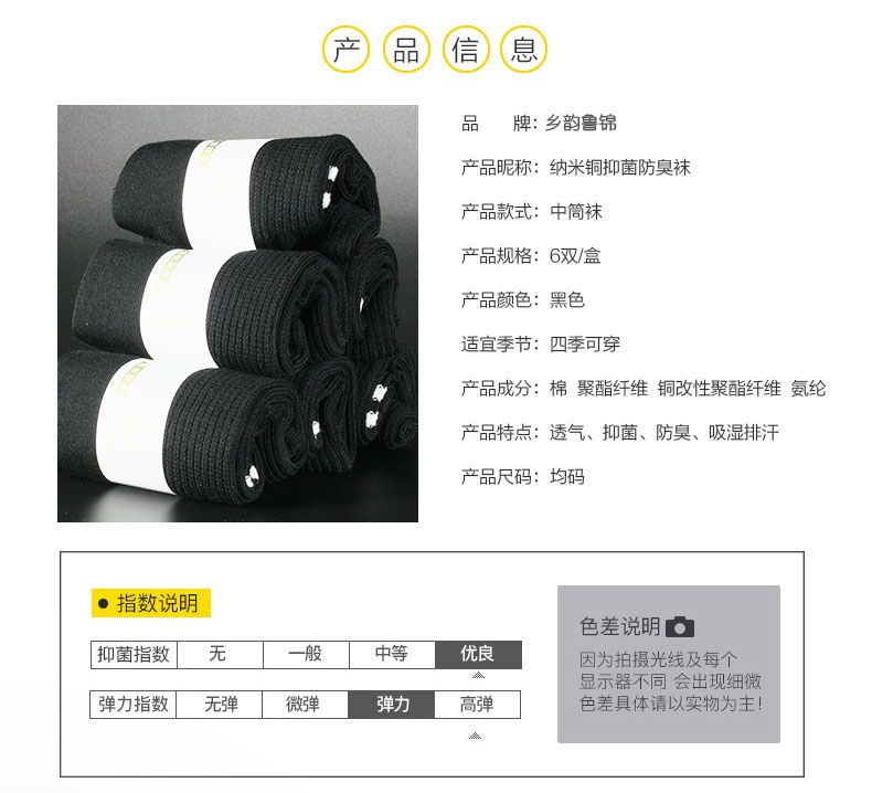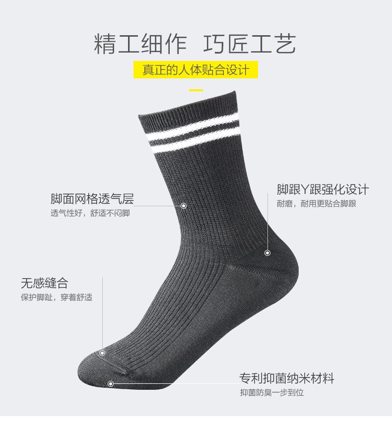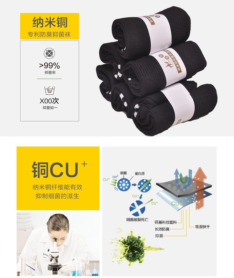 【乡韵鲁锦】纳米铜男士中筒袜 铜离子纤维 防臭