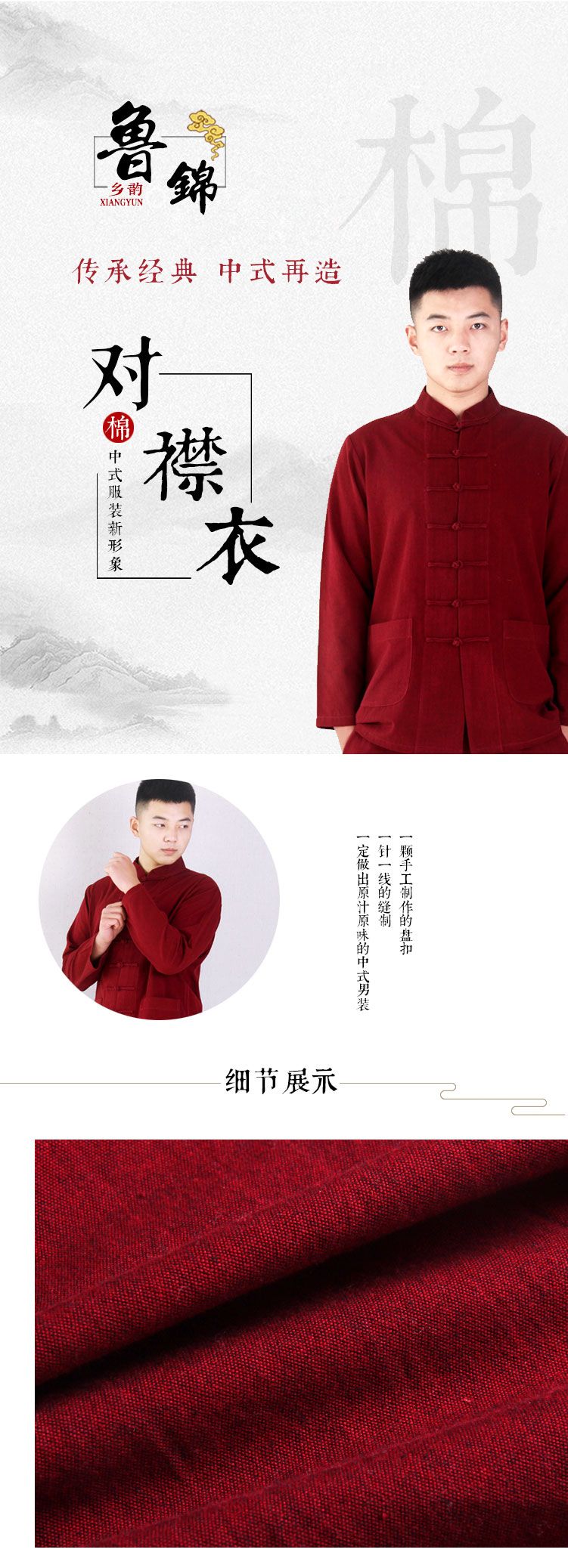 【乡韵鲁棉】男士唐装096 中式民族风衣服 美观大方 古朴 典雅 舒适 纯手工工艺精心制造